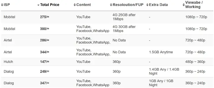 As the new era of content based internet packages are flooding the market most of the users are prone to activate it. In Sri Lanka most YouTube unlimited package are limited to 360p video resolution and limiting to 1Mbps speed limit for the price starting from RS.147 to nearly RS 400. I personally tested all the packages below and here are the results. The rating is from top to bottom.