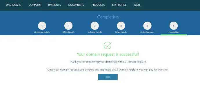 After successfully filling your data it will land on this page. Click OK and it will bring you to the dashboard.