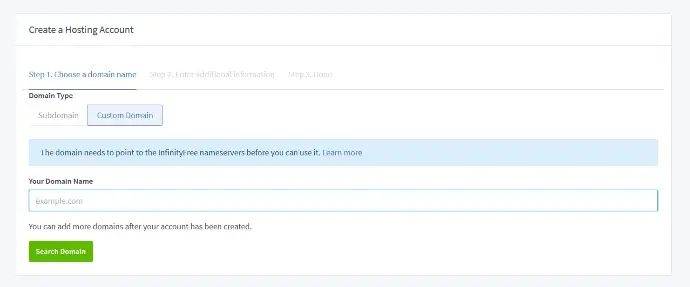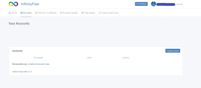 In this I’m choosing www.infinityfree.net. Go to the link and register for a free account by providing details. In the Home menu default will be Accounts click on Create an account now and click Custom Domain. Fill the details and Click Create Account and you will see “Your domain is not yet pointing to….” put those name server address following Step 4 in How to add name server to nic.lk below