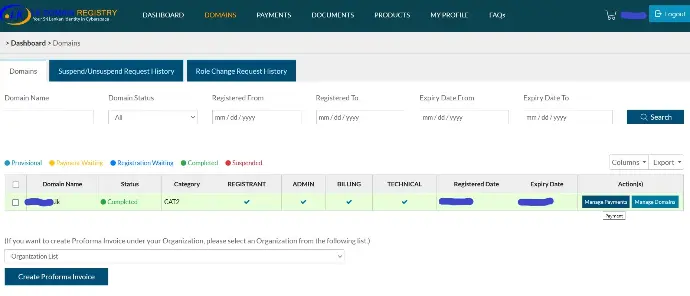 After reviewing payment information follow the details in the email. Change Credit Card /Debit Card/ Bank Slip/Online Banking ETC… as for requirements. To make payment go to the Domains and click Manage Payment (I’m Showing a payment that already completed. Please follow the instructions in the email and its easy)