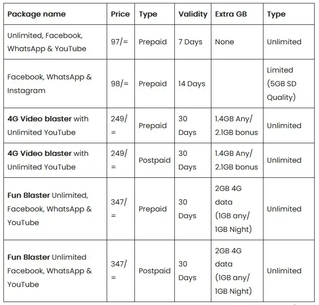 It’s easy to choose Dialog Fun Blaster over Dialog 4G video Blaster for nearly 100/=. Extra 100 Rupees is worth for adding Facebook , WhatsApp for 30 Days. RS 97/= 7 Days Dilaog Unlimited Facebook, Whatsapp & YouTube Package is worth for testing purposes if it is needed for 7 Days. 347/= package is 4/347 = 86.75/= per 7 Days. So, for long term usage Dialog Fun Blaster Unlimited, Facebook, WhatsApp & YouTube for RS.347/= Is the go to choice.