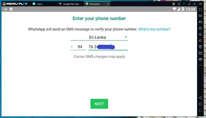 In the search bar type WhatsApp and Install it. After installation done Click Open and type your phone number and click Next. Now you will receive an SMS from WhatsApp with an activation code. Type it in the box and click next.