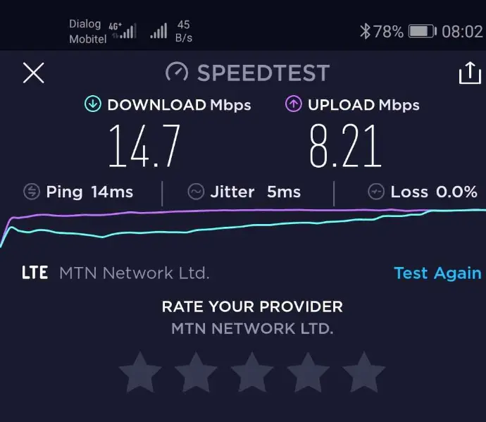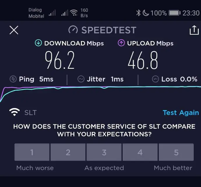 I push little harder to to find out and pit Mobitel with SLT Fiber. The time I got is Mobitel 8:56AM vs SLT Fiber 11:30PM (Sorry SLT, testing Fiber with hungry PeoTV lovers in around night and the morning is around 20Mbps to 50Mbps,